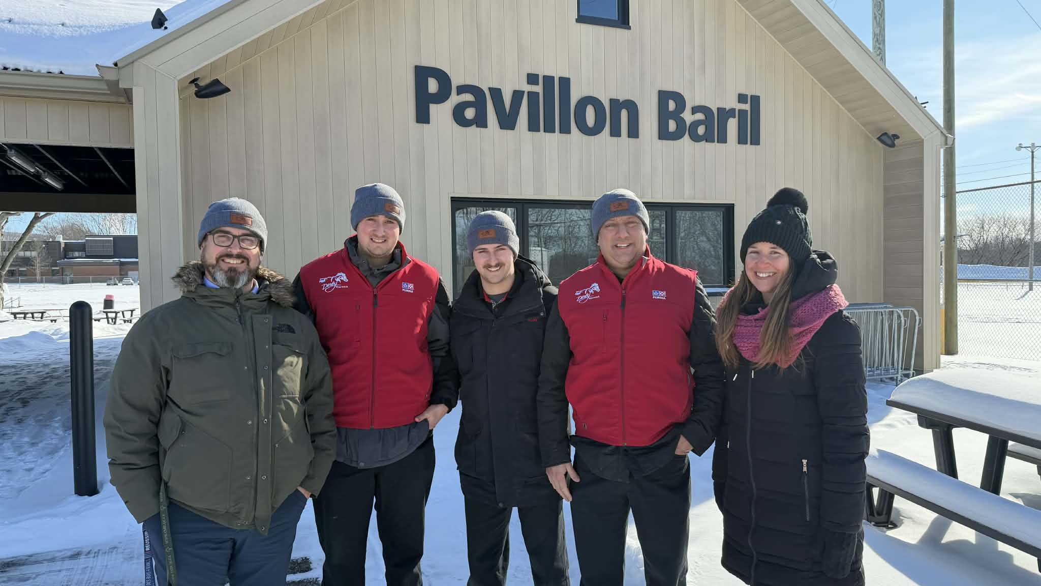 Photo – dans l’ordre habituel : Étienne Bergeron, maire de Warwick, Louis Desrochers, Albert Desrochers et Mathieu Desrochers de Derby Warwick ainsi que Jenifer-Brière Gauthier, directrice des loisirs à la Ville de Warwick.