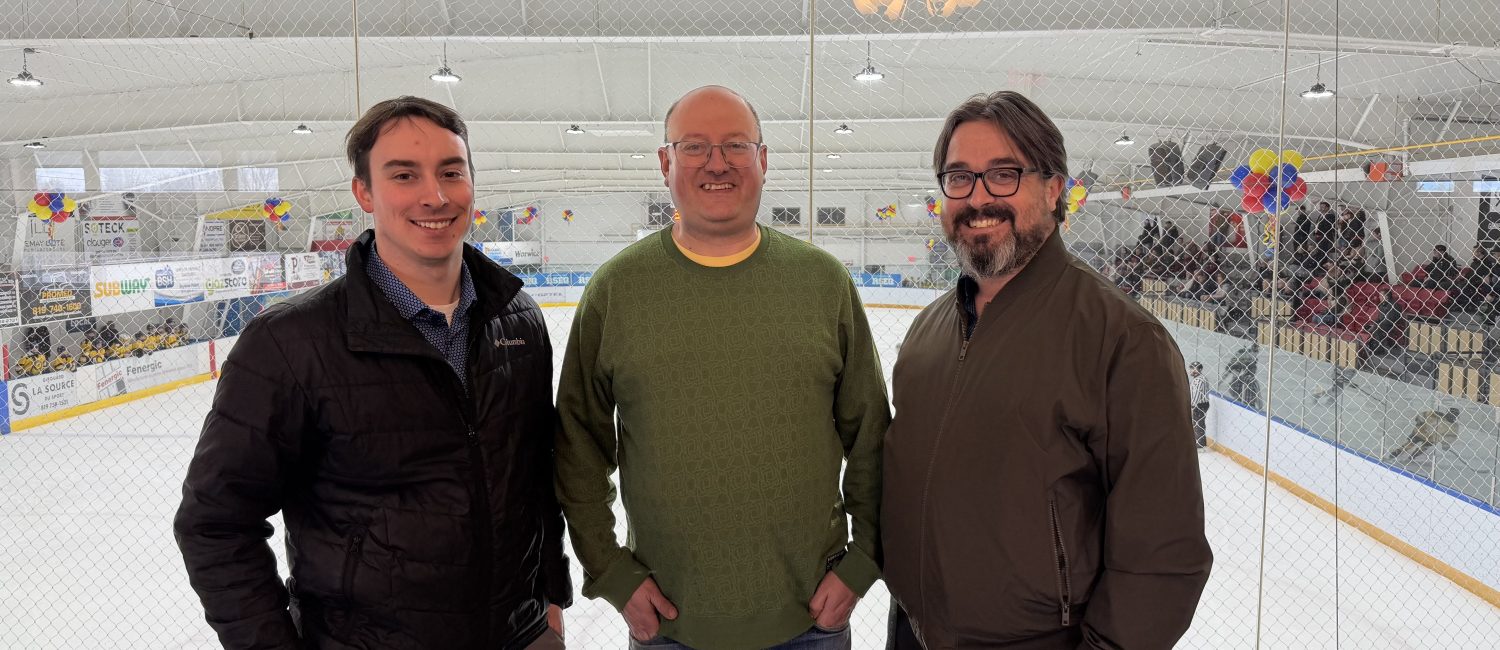 Joël Boivin, conseiller municipal à Warwick, Guillaume Desrochers, président du conseil d’administration du Centre culturel et communautaire de Warwick Inc. et Étienne Bergeron, maire de Warwick